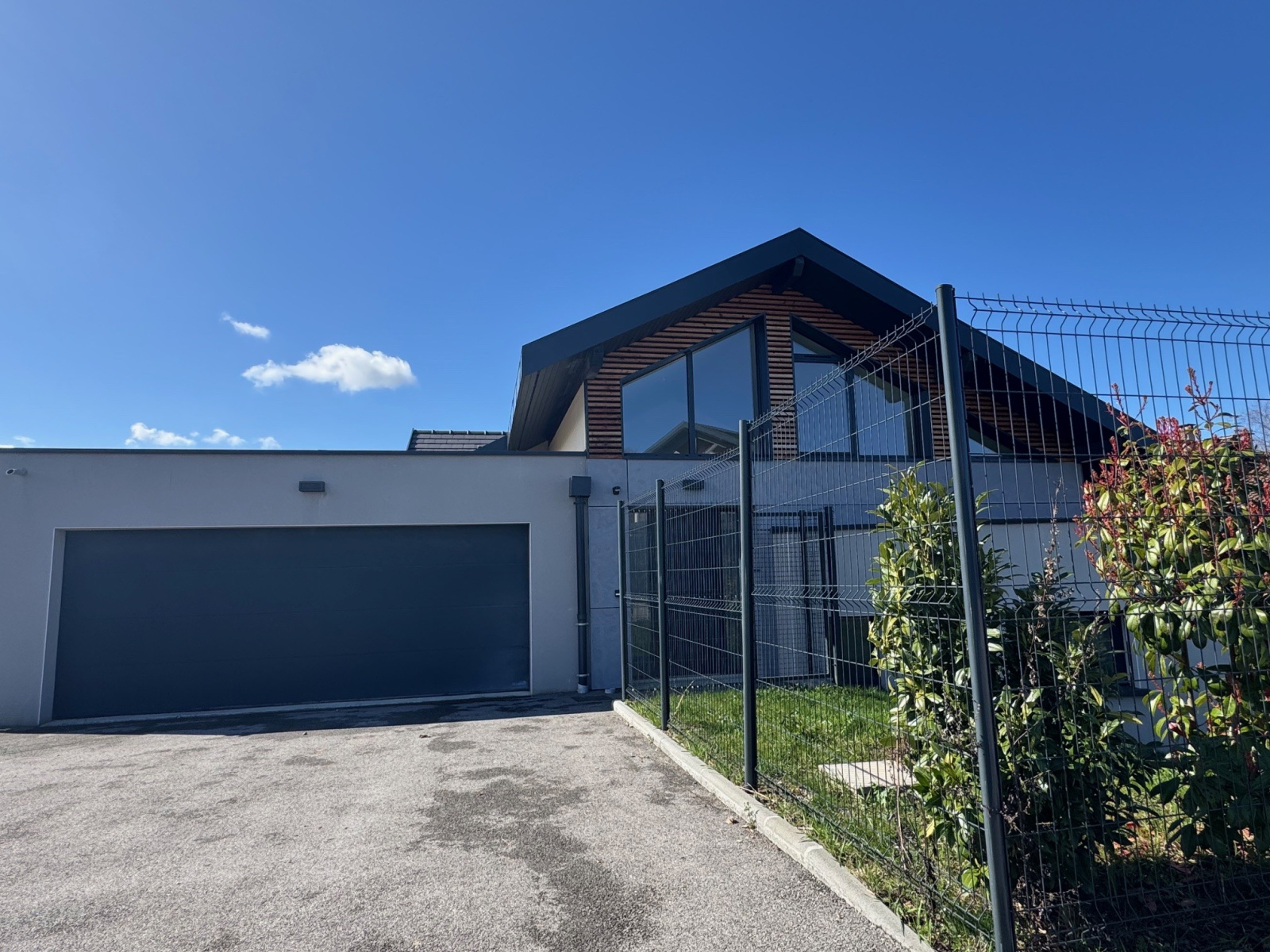 À Ballaison belle villa neuve de 167 m2 avec des prestatioons haut de gamme composée d'un entrée avec mezzanine pouvant faire office de bureau ou salle de sport - un grand salon avec cuisine équipée - une suite parentale avec sa salle de douche et dressing - 3 autres chambres avec des placardsa menagées et une salle de bain avec baignoire et douche - terasse amenagée et jardin clos.