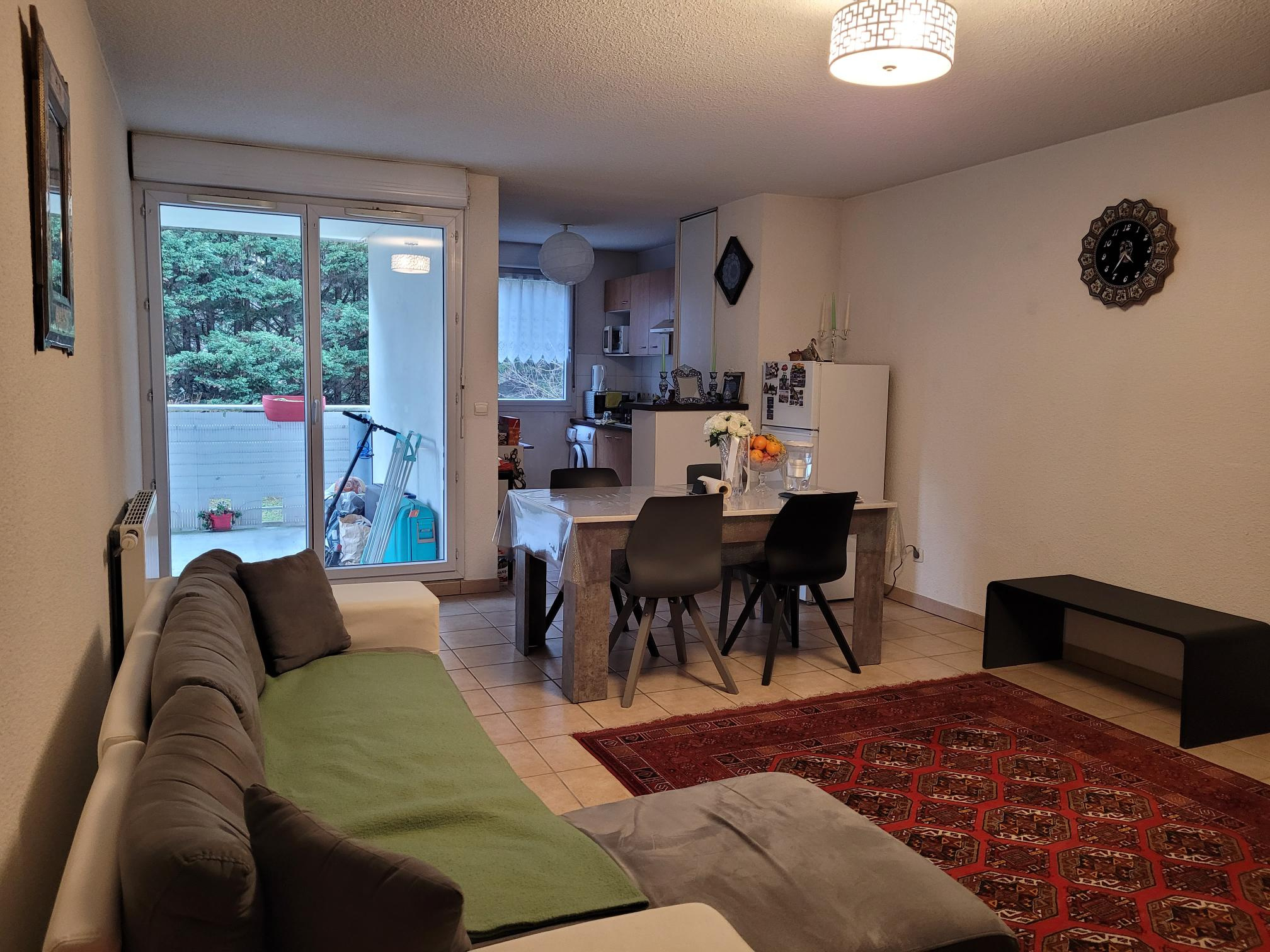 A bonneville dans une residence sécurisée F3 de 68 m² au 1er étage composée d'une entrée avec placards - un salon avec cuisine équipée - un coin nuit avec deux chambres avec placards - une salle de bains avec baignoire, lavabo et un WC indépendant - une terasse couverte de 9m².