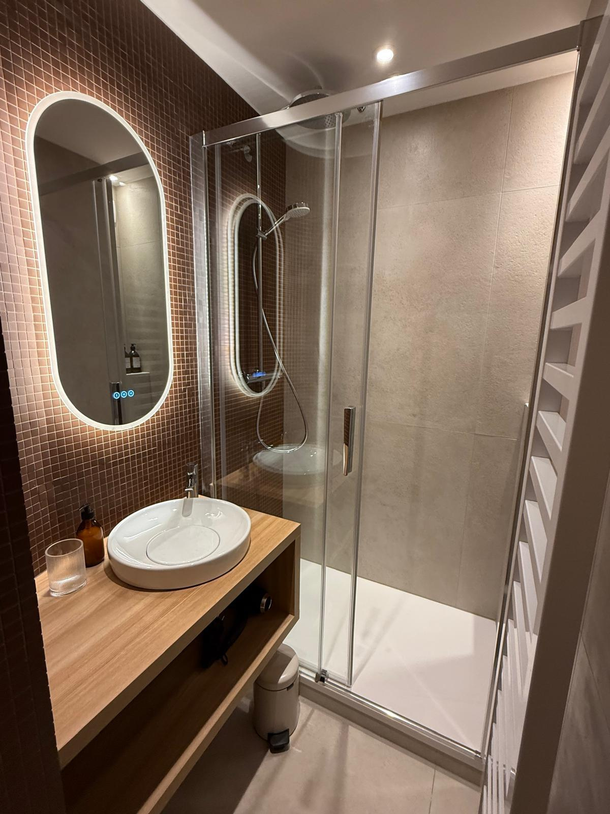 Au rez-de-chaussée, l’appartement dispose d’une suite parentale et d’un véritable espace bien-être avec sauna privatif sur mesure, ainsi qu’un WC indépendant.